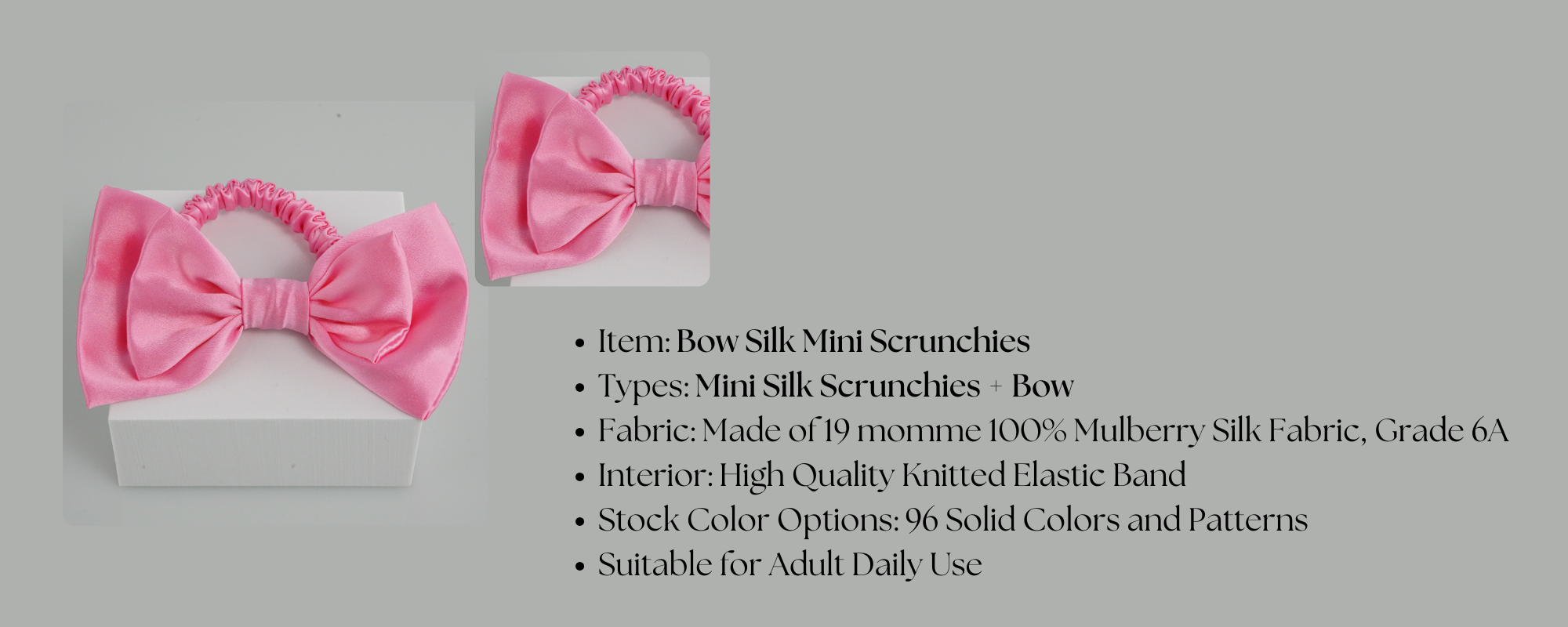 - Wholesale silk scrunchie with no minimum order. In stock and ready to ship!